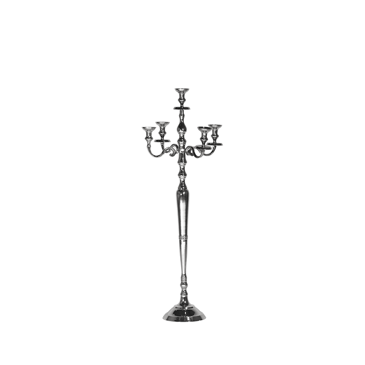 Candelabro da terra a cinque braccia in acciaio inox.