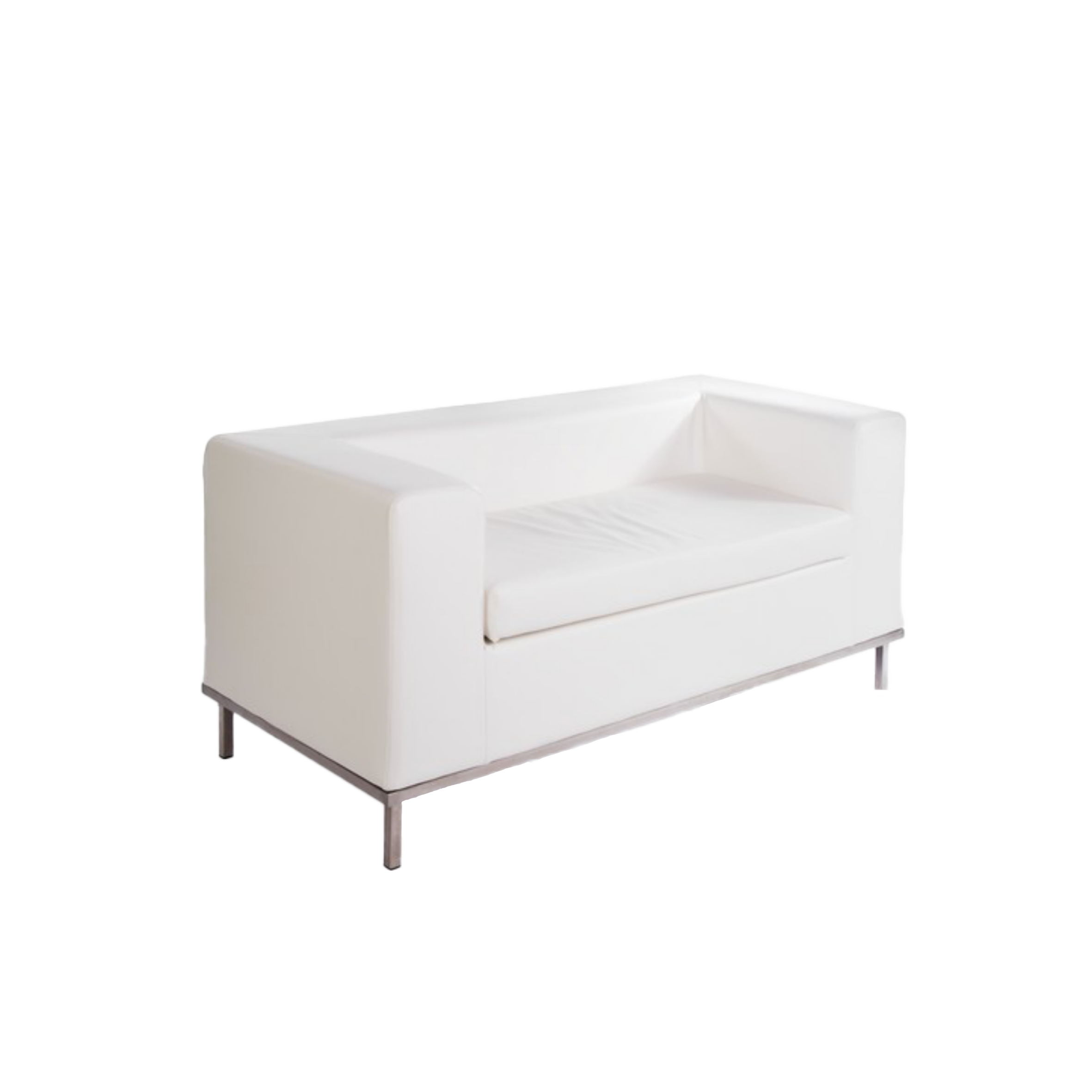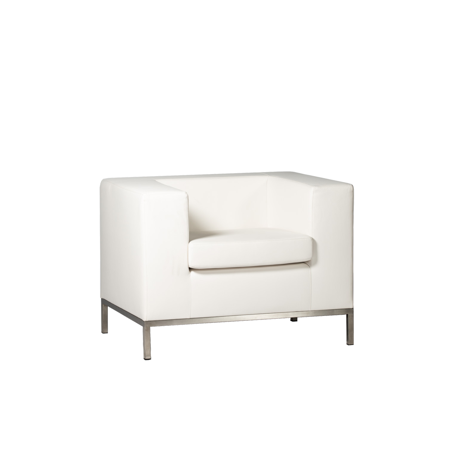 Armchair with armrests, in white faux leather, fireproof.Chrome-plated steel frame.The sofa is also available in the same model.