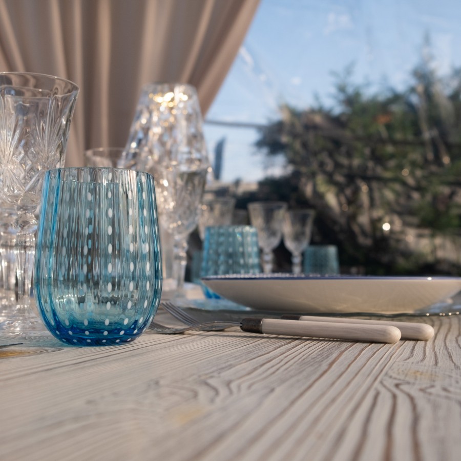 The light blue Tumbler Gocce is suitable for serving water, spirits, fruit juices, cocktails or soft drinks at any type of event.