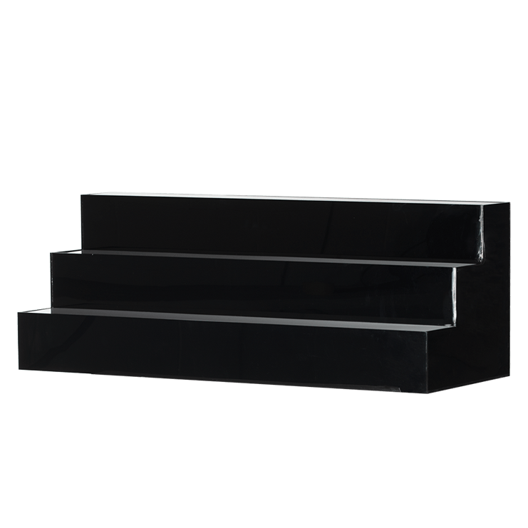 The black plexiglass stepladder consists of three steps in one piece. You can use it as a decorative or display element and for both sweet and savoury buffets. It is equipped with an electric cable.