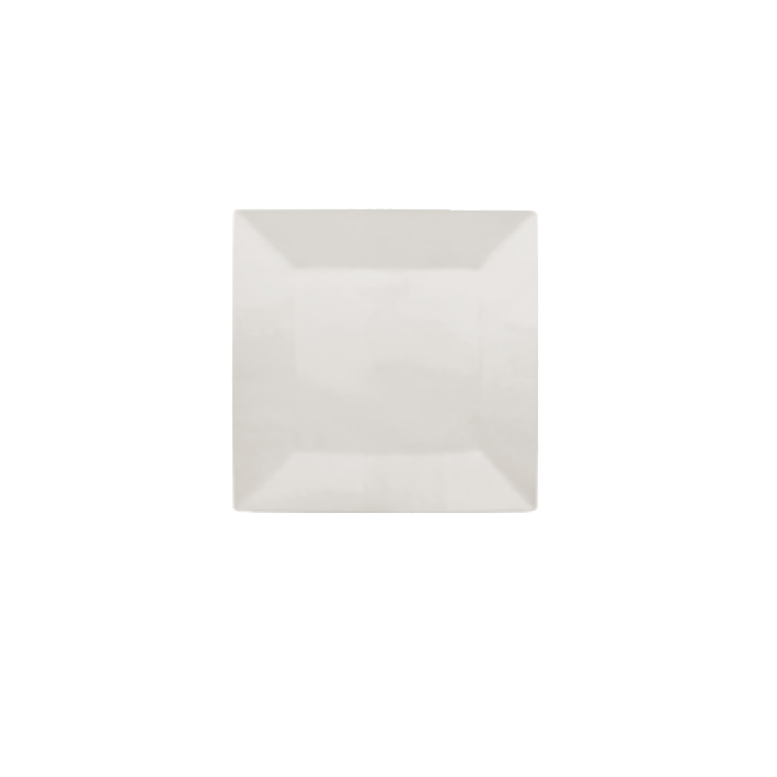 White ceramic square saucer cm. 10, for appetizers, dessert buffet, finger food.