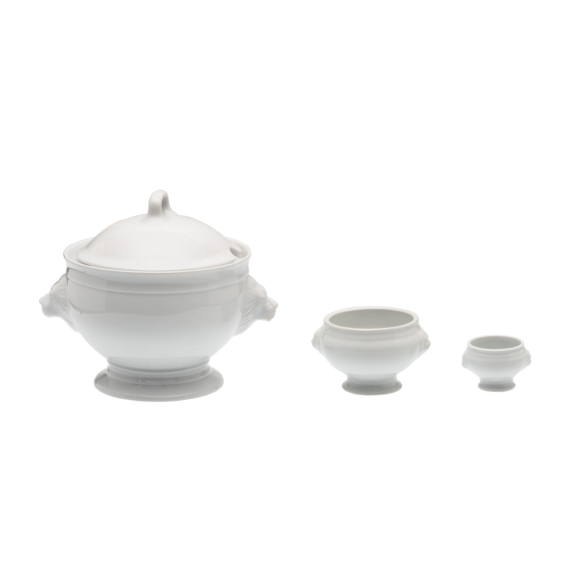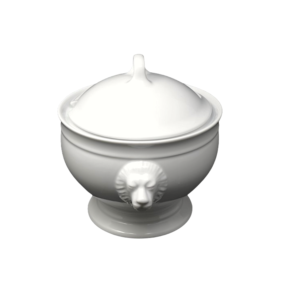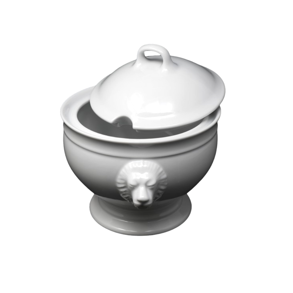 Soup tureen, lion's head, white porcelain with lid.