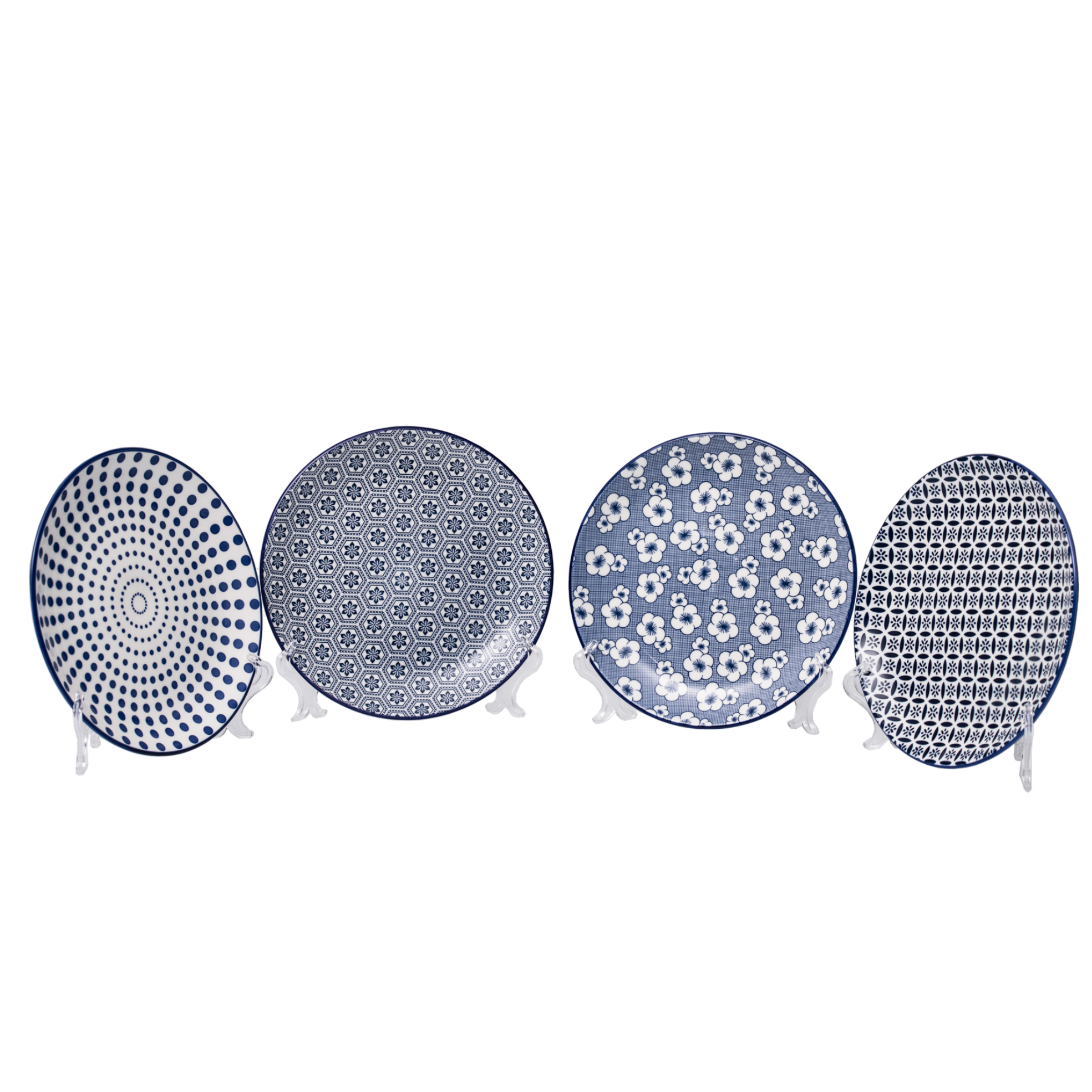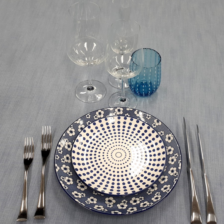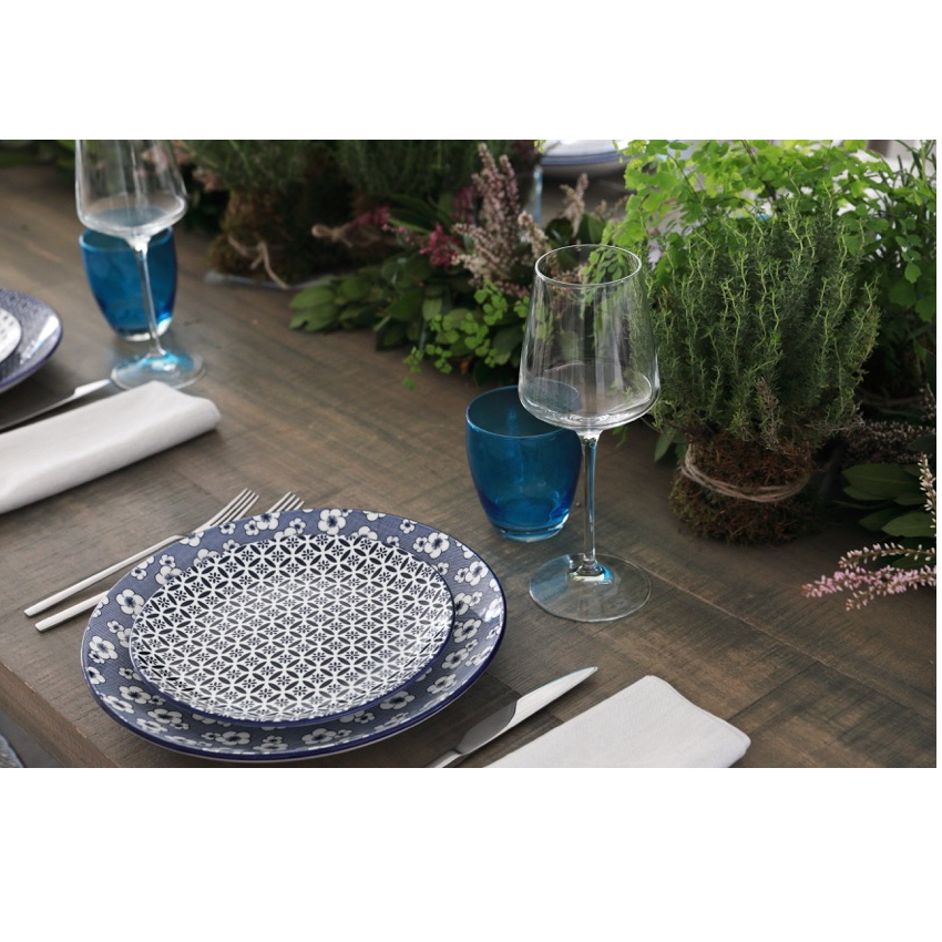 Delicato ed equilibrato nelle forme, il piatto frutta Hanami Blu è disponibile in quattro varianti decorative che alternano motivi floreali e geometrici. Il bordo blu definisce con eleganza i decori, rendendolo ideale per servire dessert o antipasti con un tocco di stile raffinato e contemporaneo.