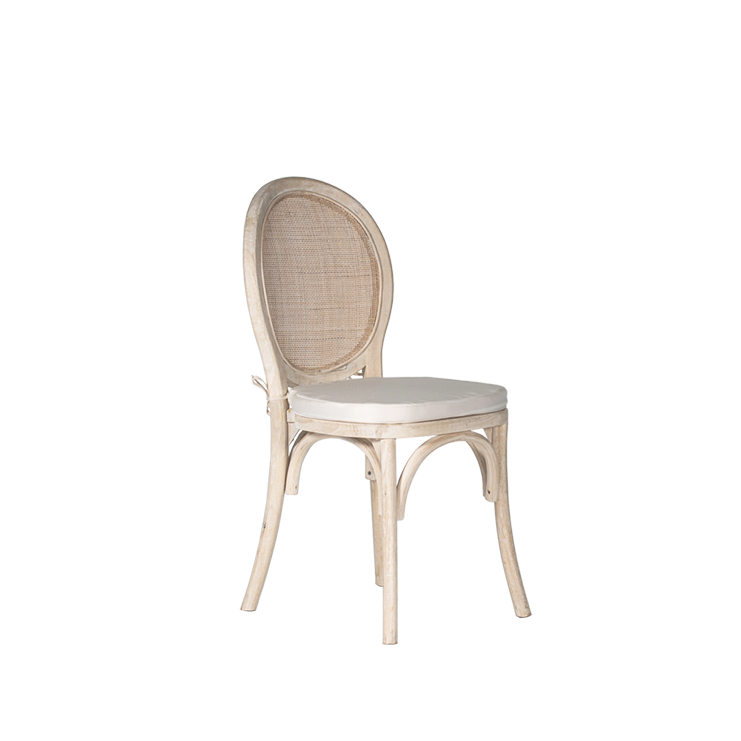 La sedia Monet è elegante nella semplicità delle forme stondate e rustica nella sostanza. In legno chiaro anticato interpreta un Vintage raffinato. Perfetta per matrimoni, eventi eleganti o shabby chic.